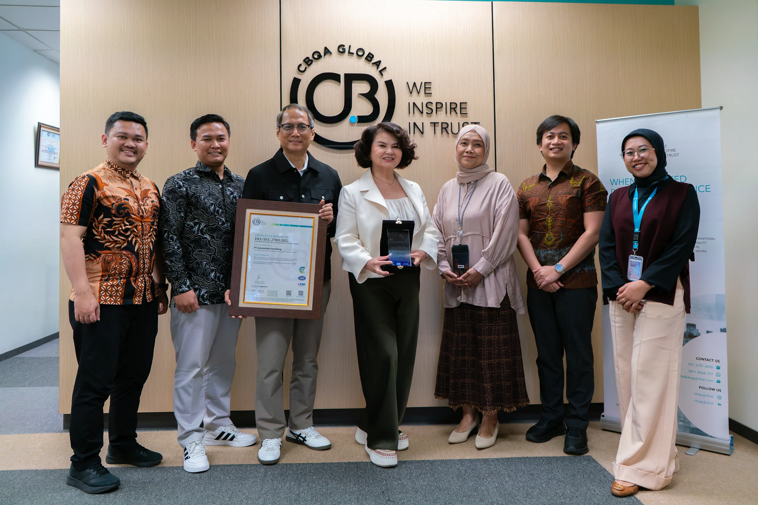 The certification was issued by CBQA Global and is accredited by Komite Akreditasi Nasional (KAN), ensuring that the audit and certification process meets nationally and internationally recognized standards.
